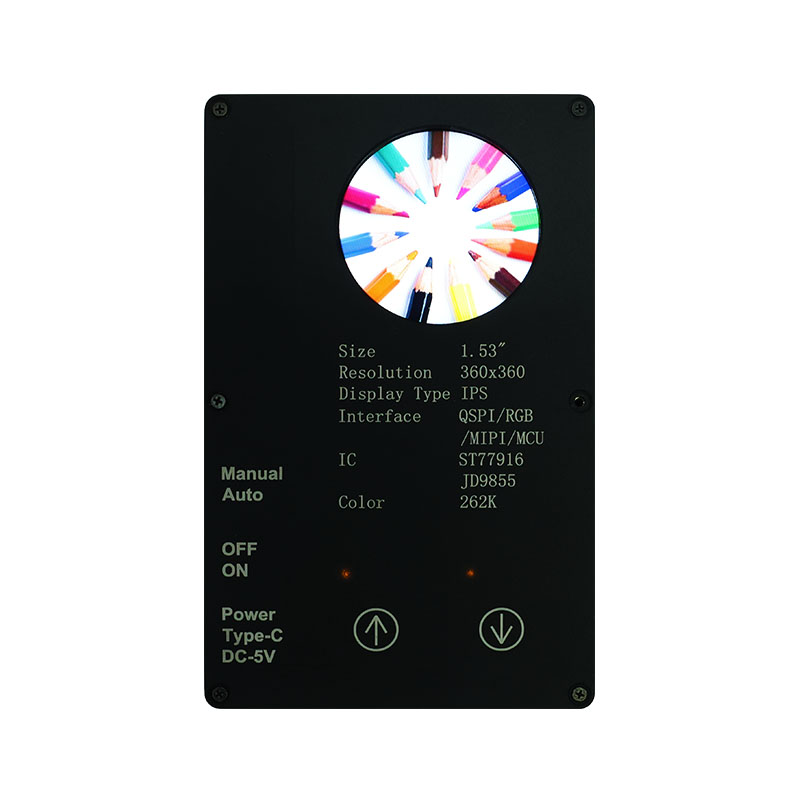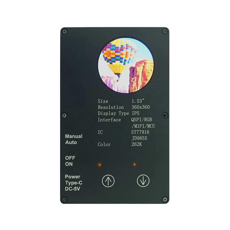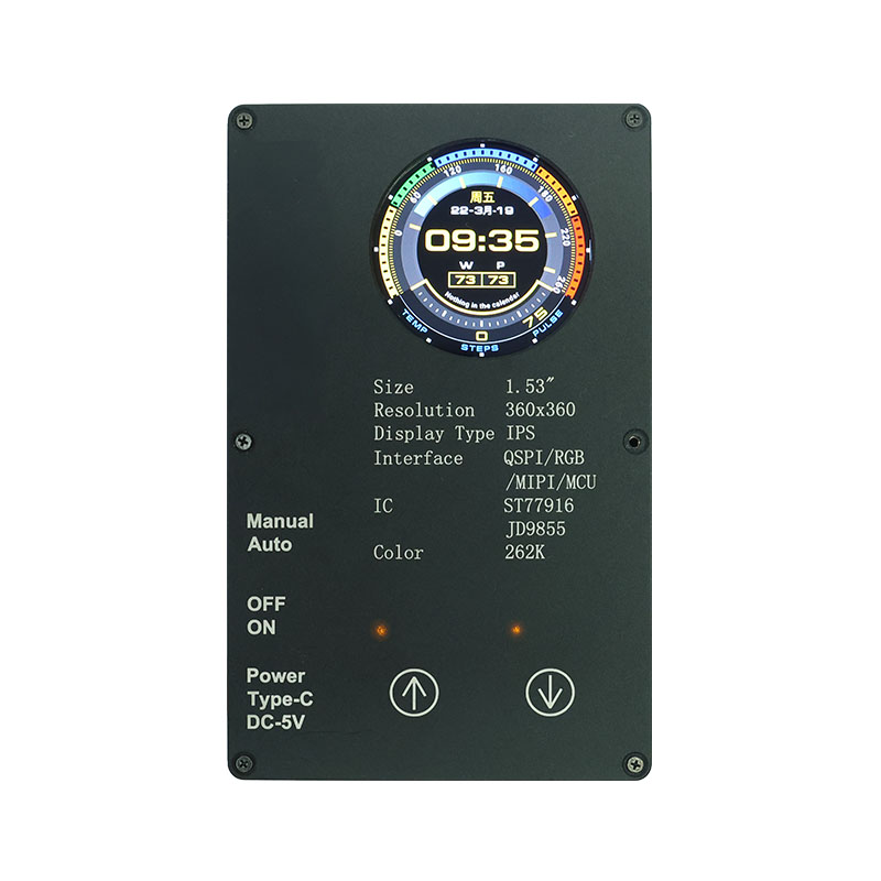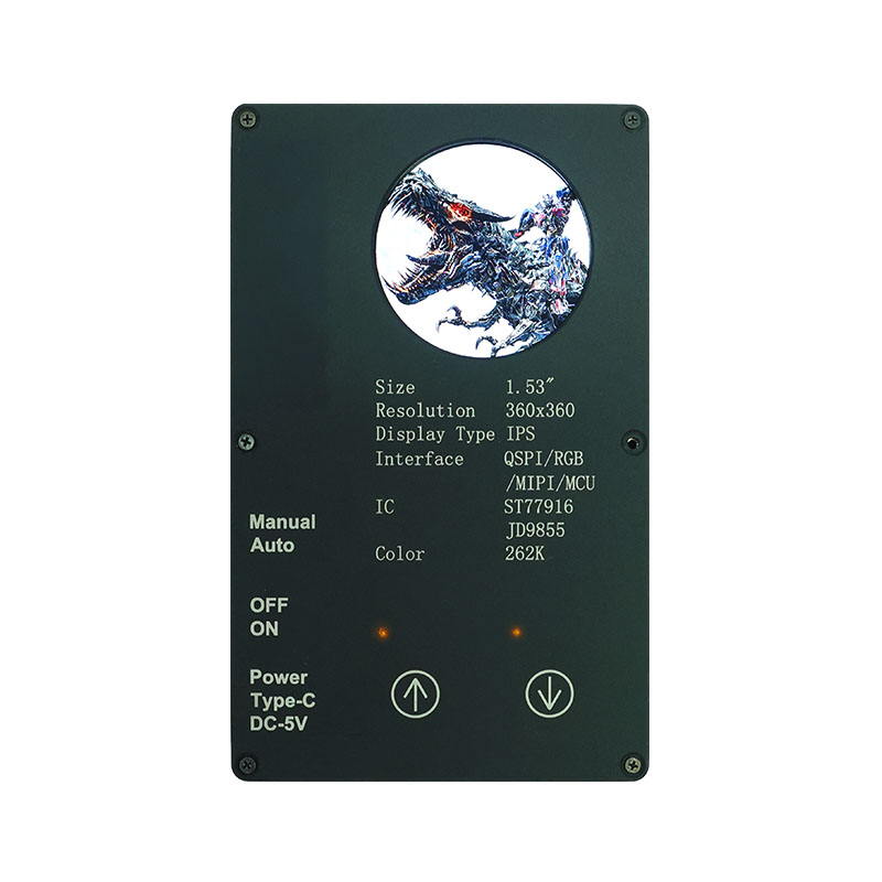 Sellel kohandatud ekraanil on 360 × 360 kõrge eraldusvõime, kõik vaatenurgad ja 400 cd/m² kõrge heledus. Tööstusliku kvaliteediga töötemperatuurivahemikuga (-20 ℃ ~ 70 ℃) tagab see selge ja stabiilse jõudluse nutikate kodurakenduste puhul, nagu lestaeemaldusseadmed ja mahlapressid. QSPI liides ja ST77916 Drive IC võimaldavad kiiret andmeedastust, samas kui selle kompaktne mooduli suurus (40,46 × 41,96 × 2,16 mm) maksimeerib ruumi tõhusust.