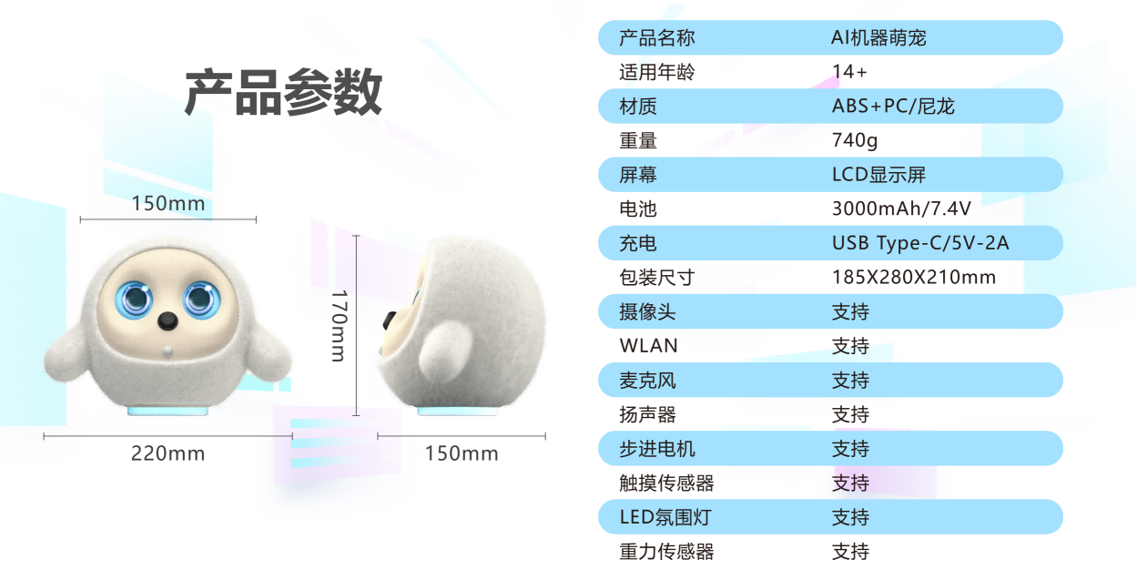 AI Robotic Pet järgib bioonilise disaini filosoofiat, luues puutetundlikult mugava ja visuaalselt sõbraliku välimuse ning suure afiinsusega.