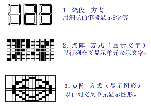 Segmendi kuvad:Oma lihtsate ja odavate omadustega on nad spetsialiseerunud numbrite, tähtede või lihtsate ikoonide kuvamisele. Need on klassikaline valik sellistele seadmetele nagu mõõteriistad ja põhilised kodumasinad.